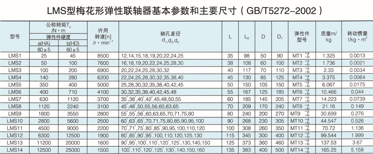 LMS型梅花形彈性聯(lián)軸器 |