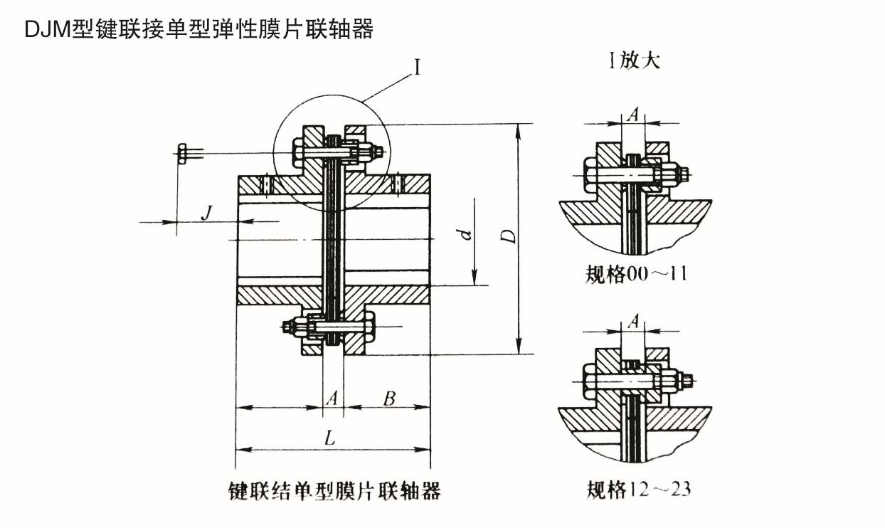 DJM型鍵聯(lián)接單型彈性膜片聯(lián)軸器 |