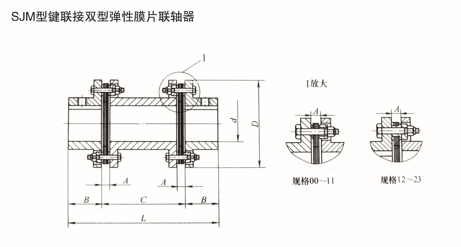 SJM型鍵聯接雙型彈性膜片聯軸器