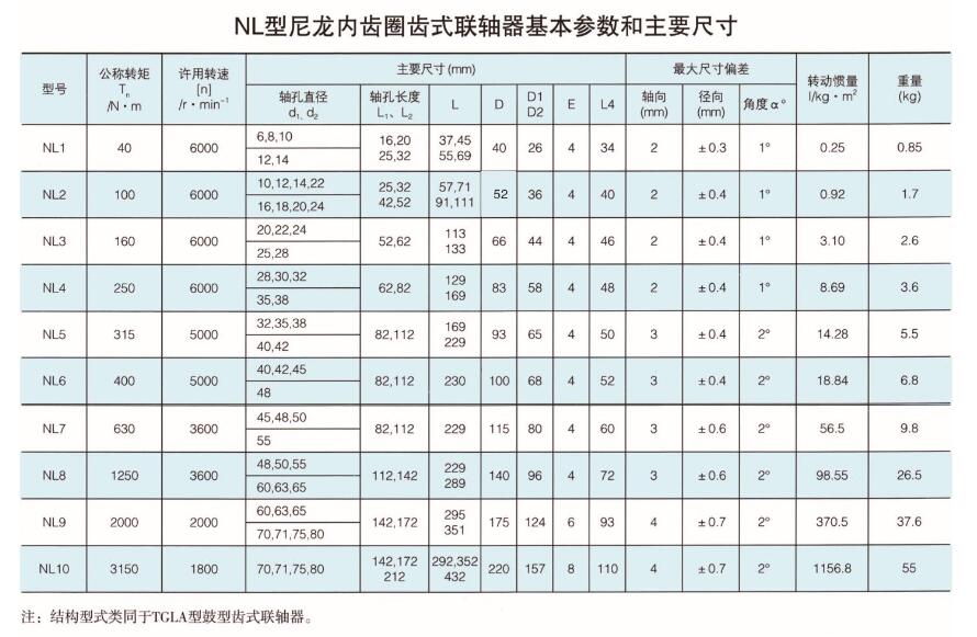 NL型尼龍內齒圈齒式聯軸器